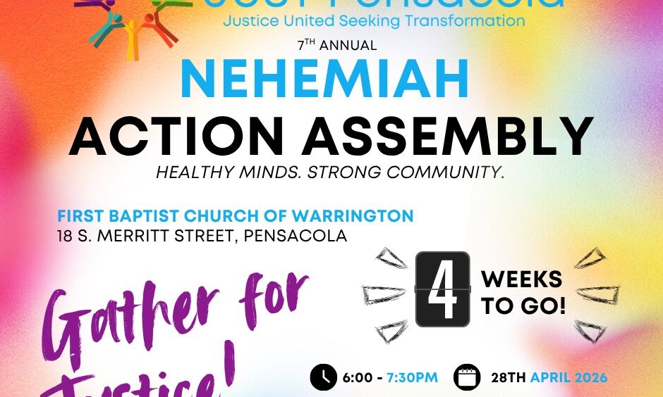 - JUST Pensacola: Report on Nehemiah ActionThe Nehemiah Action was a big success. It was held on May 6th at First Baptist church of ...